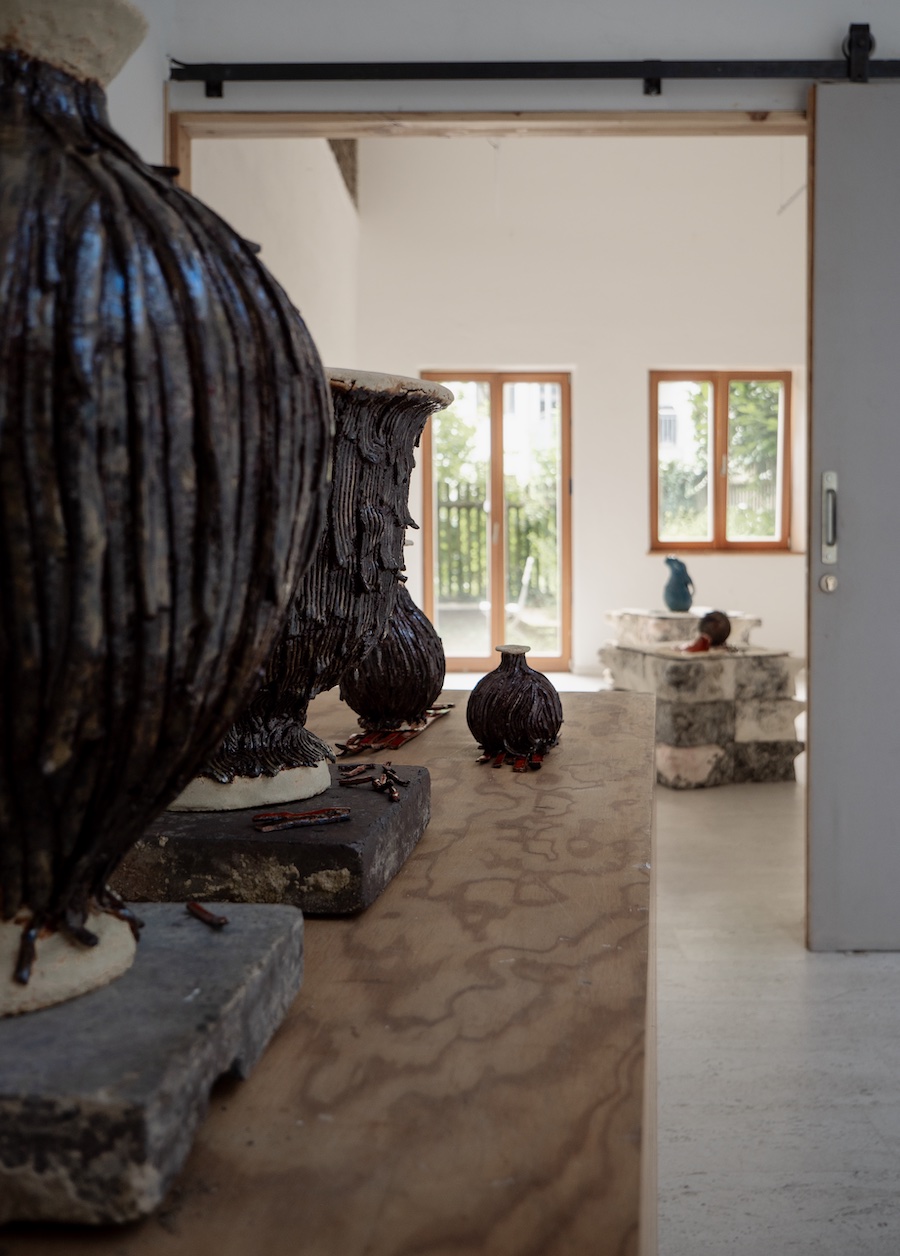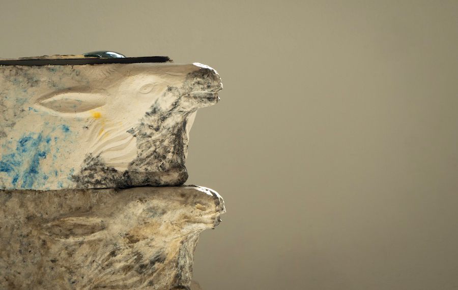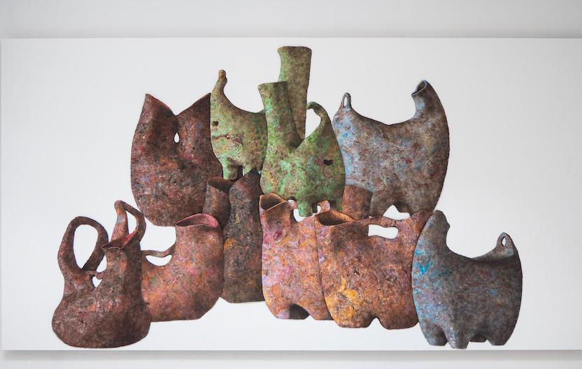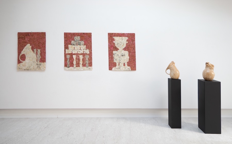 ceramic objects, paintings or flat paper sculptures. The mixing of levels blurs the