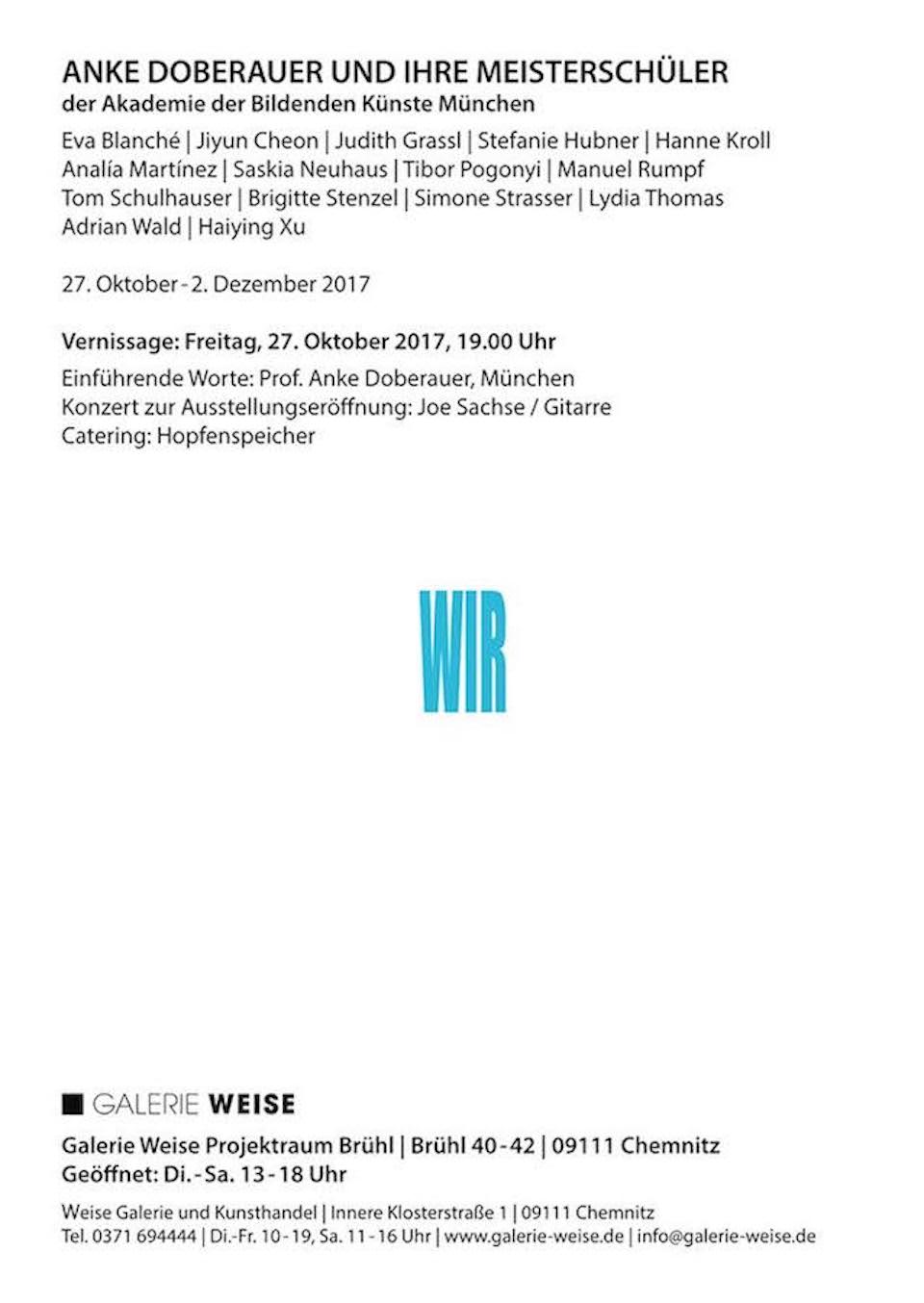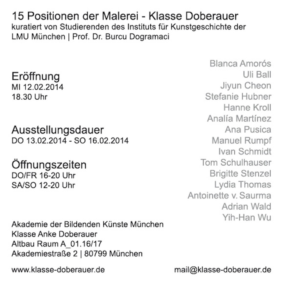 Meisterschüler von Anke Doberauer: Jiyun Cheon, Yeonsoo Kim, Analìa Martinez, Saskia Neuhaus, Manuel Rumpf, Lydia Thomas, Adrian Wald
