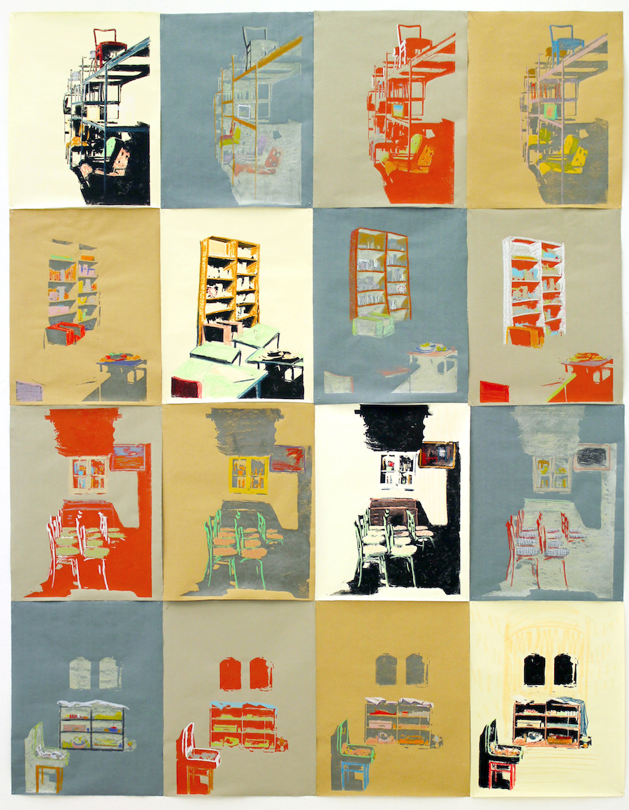 Vierlinge, 252 x 192 cm, coloured linoleum prints on paper, 2015